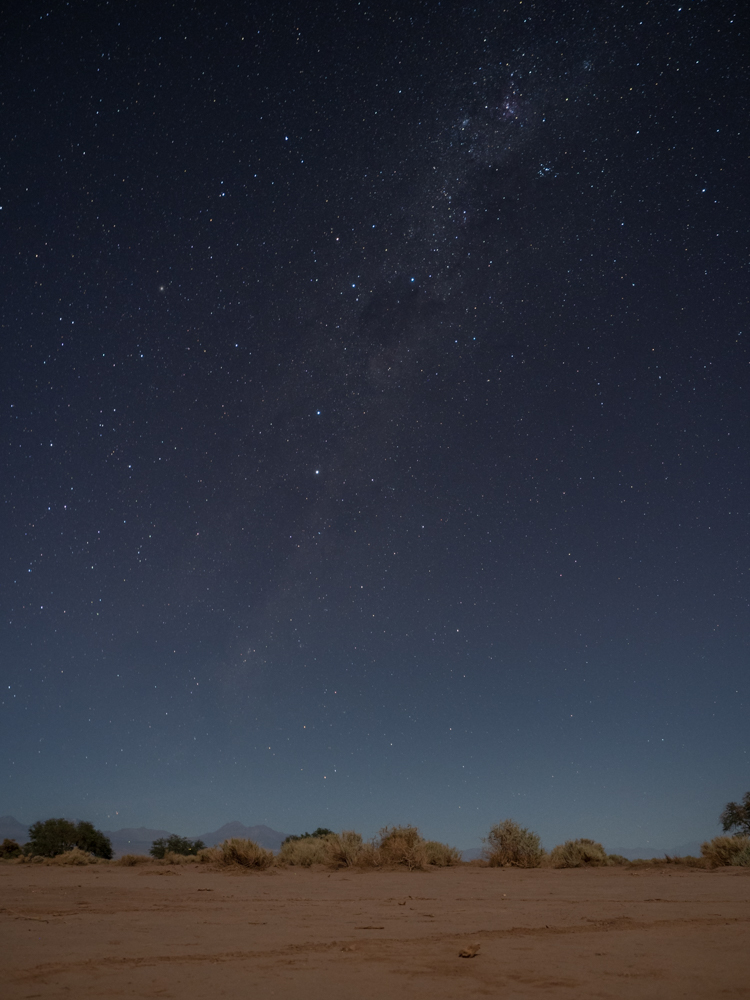 Den Nachmittag habe ich frei und bummle durch San Pedro, gehe ein Eis essen und kaufe Souvenirs. Um kurz vor neun beginnt dann meine letzte Tour: die besagte Stargazing-Tour. Wir fahren eine halbe Stunde raus aus San Pedro und irgendwo mitten im Nichts erwartet uns die Astronomin Nadia mit ihren drei Teleskopen. Um uns rum ist nichts zu sehen, keine Lichter, keine Lichtverschmutzung. Über uns glänzt der Sternenhimmel. Nur der Halbmond trübt das Stargazing etwas, denn er bringt überraschend viel Licht ins Dunkel. Nachdem sich unsere Augen an die Dunkelheit gewöhnt haben, reicht das Licht des Mondes sogar aus, um die nähere Umgebung zu erhellen, und meine mitgebrachte Taschenlampe muss ich gar nicht erst auspacken. Das bedeutet allerdings auch, dass die Sterne nicht allzu gut zu sehen sind. Doch auch wenn ich schon einen besseren Sternenhimmel gesehen habe, sind die Erklärungen zur Entstehung des Universums, zu verschiedenen Sternenkonstellationen und zum Leben von Sternen schon sehr interessant. Auch der Blick durch die Teleskope ist atemberaubend. Immer wieder gleiche ich mit bloßem Auge ab, worauf ich da eigentlich schaue, denn Mond, Nebulas und Sterne durchs Teleskop zu sehen, ist einfach umwerfend. Zum Abschluss gibt es dann noch ein kleines Snackbuffet, auch wenn die meisten den Pisco lieber gegen eine heiße Schokolade eintauschen.