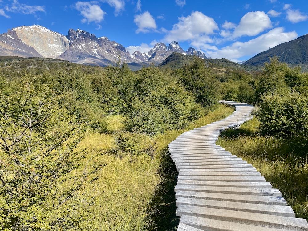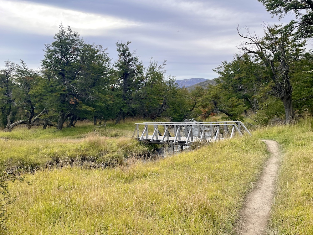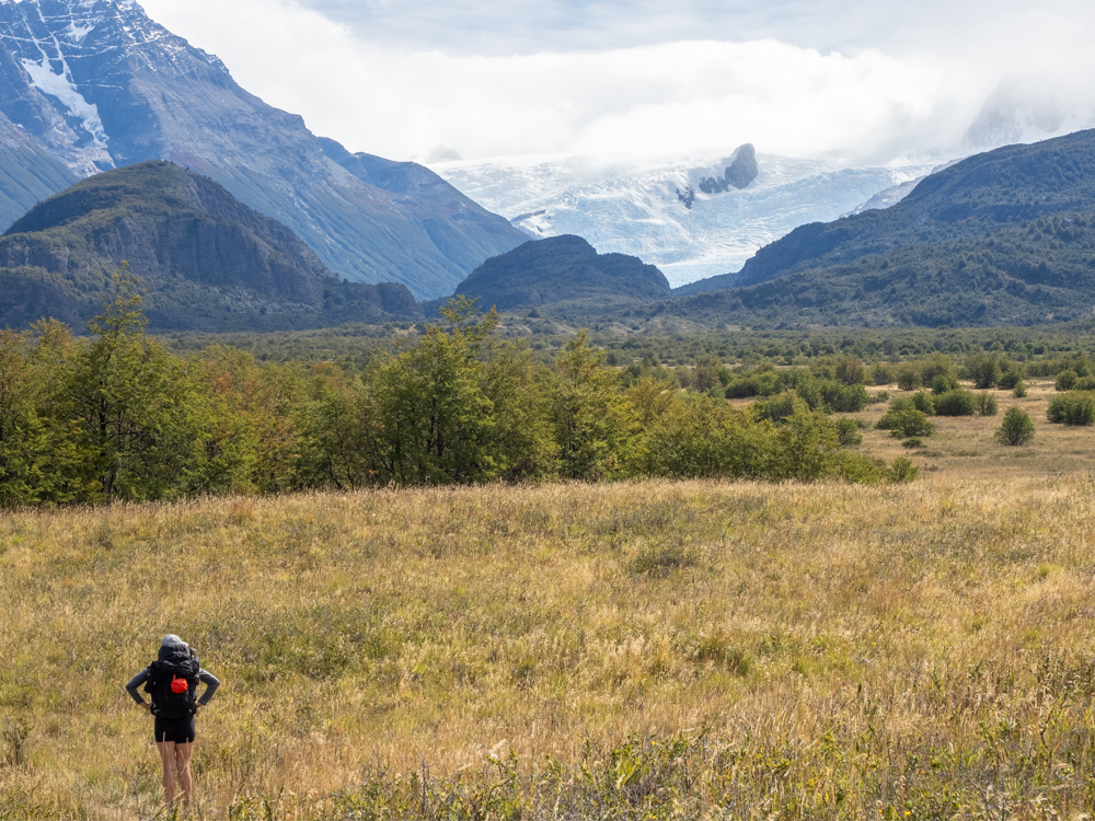 Die Landschaft ist einfach umwerfend. Noch dazu das gute Wetter. Oft bleiben wir stehen, um die Aussicht aufzusaugen und Fotos zu machen. Den Lago Paine haben wir mittlerweile hinter uns gelassen und nach rechts öffnet sich der Blick auf den Dickson-Gletscher. Später, als wir einen Blick auf die Karte werfen, erfahren wir, dass das bereits Argentinien ist.